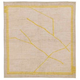 Der Teppich Taurus zeichnet eine fragmentierte Silhouette auf einem hellen Feld, in einem subtilen Gleichgewicht zwischen Spannung und Stille. Sein geometrisches Muster, unregelmäßig im Aussehen, erinnert an eine Kammlinie an der imaginären Grenze. Christopher Farr übersetzt die abstrakte Essenz durch einige Linien, die auf ein handgeknüpftes Wolldekor gelegt werden. Das Design, das in einem doppelten Rahmen enthalten ist, gibt dem Raum einen zurückhaltenden Rhythmus.