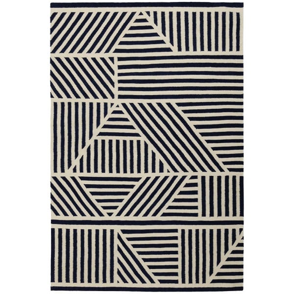 Le tapis Loha de Floor Story présente un tracé géométrique composé de rayures orientées dans plusieurs directions. Les lignes obliques, verticales et horizontales forment triangles et trapèzes qui évoquent un patchwork rythmique. L'ensemble crée un effet de construction graphique en mouvement. Réalisé en laine, ce décor associe souplesse naturelle et précision du dessin pour souligner la richesse du motif.