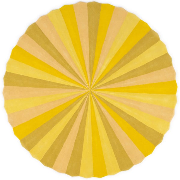 Le tapis Chroma signé Floor Story évoque un cercle chromatique vibrant au dessin géométrique rayonnant. Ses bords festonnés soulignent la dynamique du motif en éventail. Tufté à la main en laine, ce décor présente une fibre noble appréciée pour sa douceur et sa résistance. Chaque segment capte une nuance végétale ou minérale, dans un rythme visuel harmonieux.