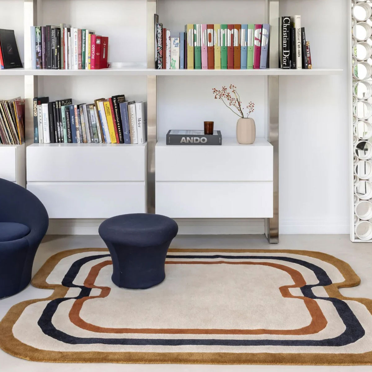 Edito présente Papillon, un tapis à la silhouette douce et sculptée. Ses courbes fluides dessinent une géométrie mouvante, comme suspendue dans un élan. La composition évoque le battement lent d'ailes stylisées, dans une forme presque symétrique. Confectionné en laine tuftée principale, il déploie au sol une texture dense et une présence chaleureuse.