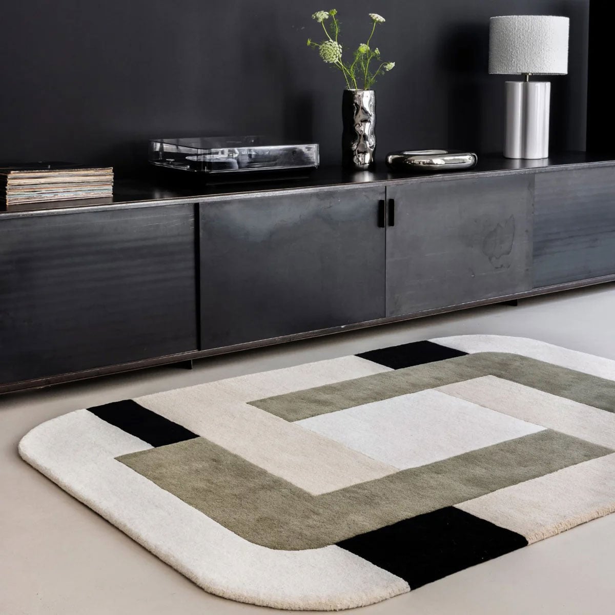 Avec le tapis Cadenas, Edito révèle un jeu d'imbrications audacieuses aux accents architecturaux. Les lignes géométriques se croisent en un motif en relief, dont la structure donne rythme et profondeur à la surface. Confectionné entièrement en laine, ce modèle conjugue densité tactile et sobriété formelle. Chaque segment s'emboîte et forme une composition en tension contenue.