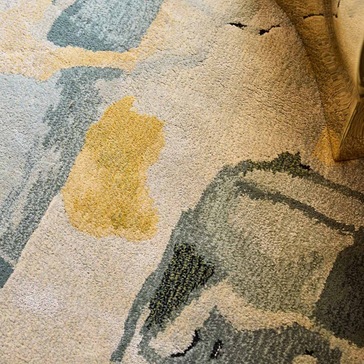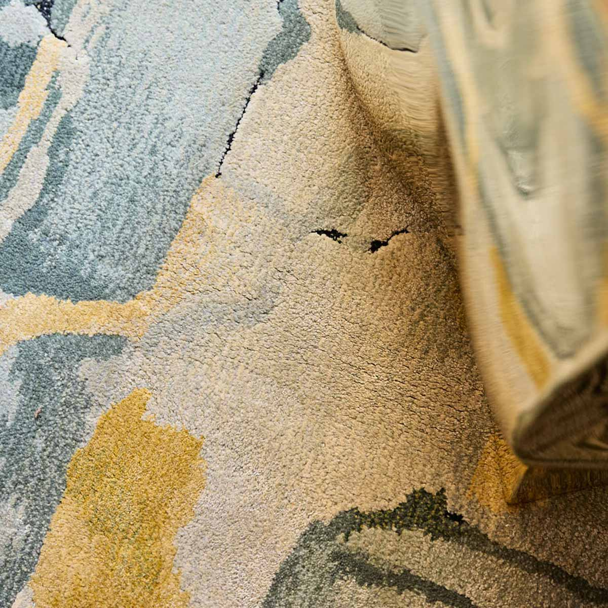 Serge Lesage signe Andaria, un tapis au motif abstrait où des fragments s’imbriquent en variations subtiles. La composition évoque une surface traversée de rythmes libres, structurée par des tracés nuancés. La laine et la fibre de bambou animent le relief et révèlent une matière dense. Tufté main, ce décor dévoile un jeu de bouclettes qui instaure des irrégularités maîtrisées.