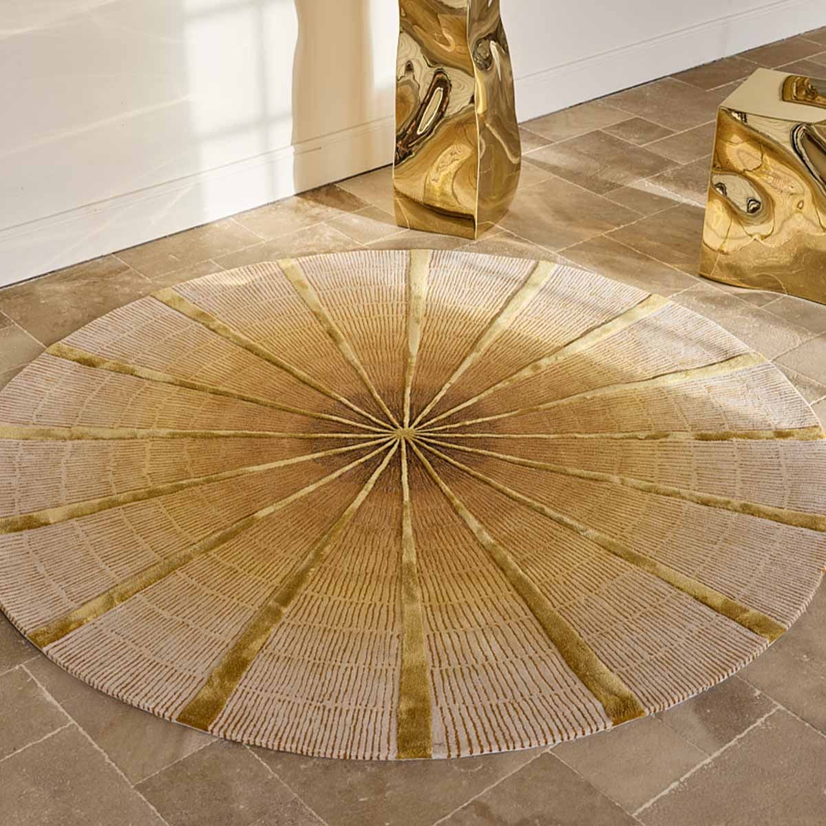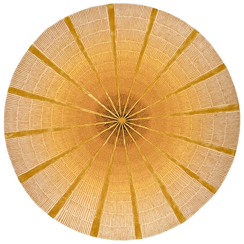 Le tapis Churuatas de Serge Lesage dessine un motif géométrique structuré en cercle, dont la composition rayonne depuis un centre dense vers la périphérie. Son tracé évoque l’architecture radiale des huttes indigènes observées par l’artiste vénézuélienne Claudia Lavegas. En laine et en bambou, il révèle une matière vivante et douce au toucher. Tufté main, il affirme une présence agencée et graphique au sol.