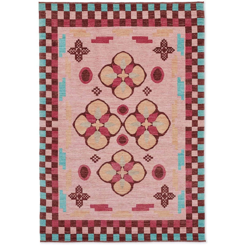 Le tapis Bud met en scène une composition florale stylisée en forme de bourgeons, mêlé à des éléments géométriques délicats. Ce décor noué à la main est réalisé en pure laine de Ghazni, réputée pour sa qualité. Conçu selon une tradition artisanale, il révèle un dessin vivant inspiré de motifs classiques revisités. L’ensemble forme une trame rythmée, pleine de vitalité et de raffinement.