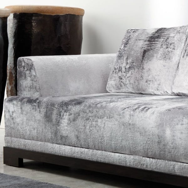Velours Nobilis faux uni avec jeu de fils mats et brillants. Avec son aspect usé et vintage, ce tissu haut de gamme rappelle les anciens murs ottomans.