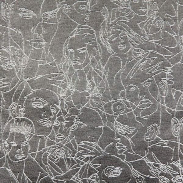 Le modèle Regard est un tissu édité par Jean Paul Gaultier. Ce satin de coton représente un tableau artistique mettant en scène des personnages dessinés à la main. Ces yeux semblent alors transmettre de profondes émotions.