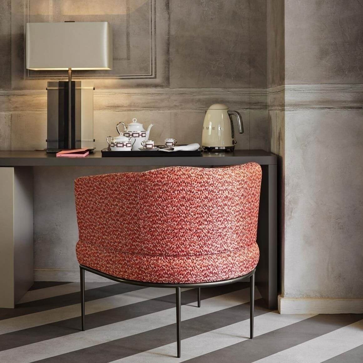 Inspiré des perles vénitiennes multicolores, Beat est un Jacquard orné de multiples nuances qui permettent de faire vibrer le mini motif de ce faux uni. Ce veritable kaléidoscope de couleurs se décline sur une toile Trévira aux propriétés non feu, qui en font un textile idéal pour la confection de rideaux ou de sièges chatoyants.