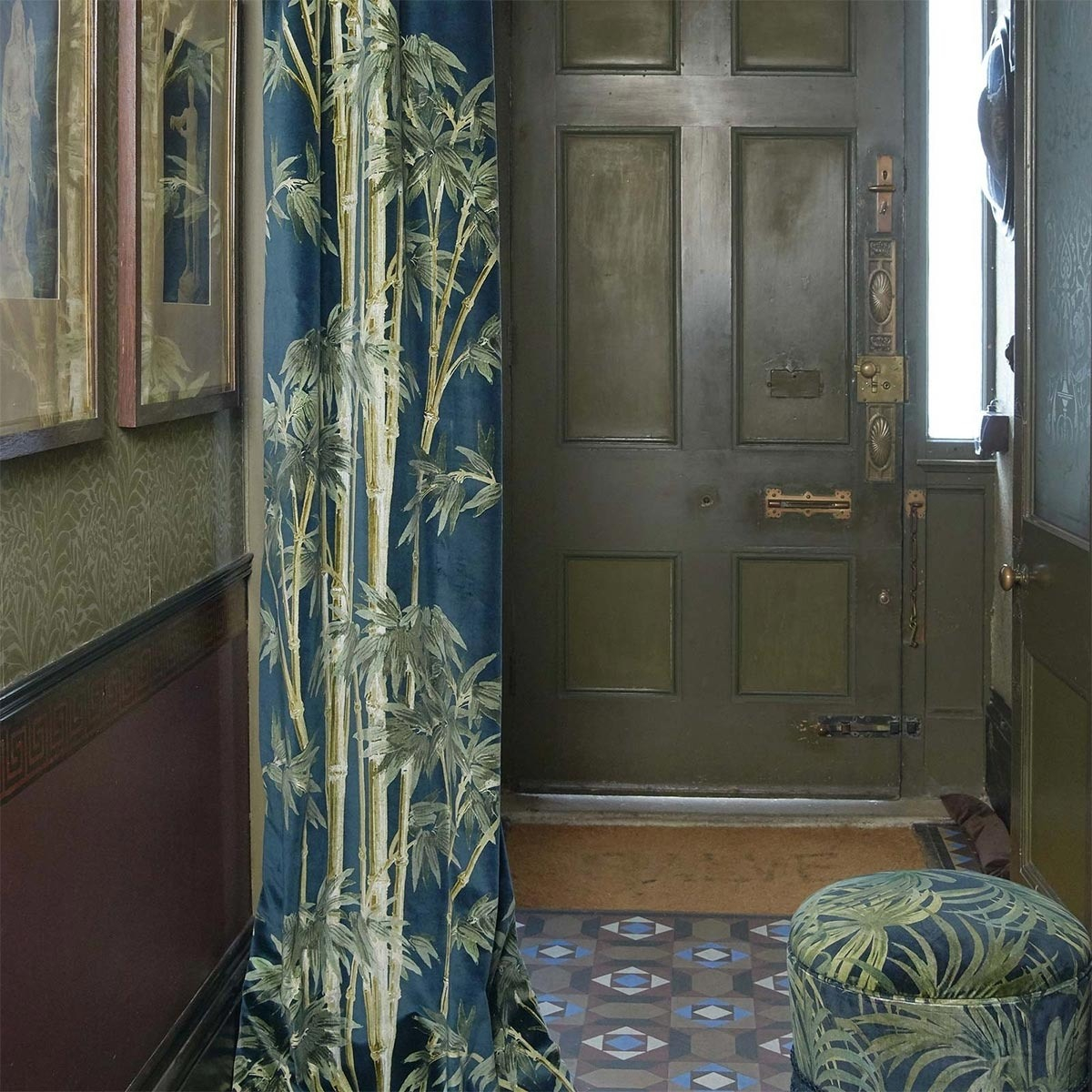 Édité par House of Hackney, l'exotique Bambusa met en avant un design intemporel créé par la fameuse maison Zuber. Il illustre une forêt de bambous comme peinte à la main, dans des couleurs naturelles sur un fond uni. Fait d'un velours entièrement en coton, il est légèrement brillant et agréablement doux au toucher.