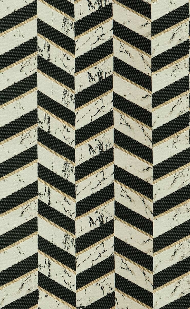 Villa de Lelièvre est une reinterpretation des sols travaillés des palais italiens. Ce luxueux tissu présente un motif de chevrons bicolores composés d'une teinte mate et d'un effet marbré. Chaque figure est soulignée d'un ruban fin métallique pour un résultat élégant. Ce textile signé Lelièvre offre une note luxueuse à tout décor.