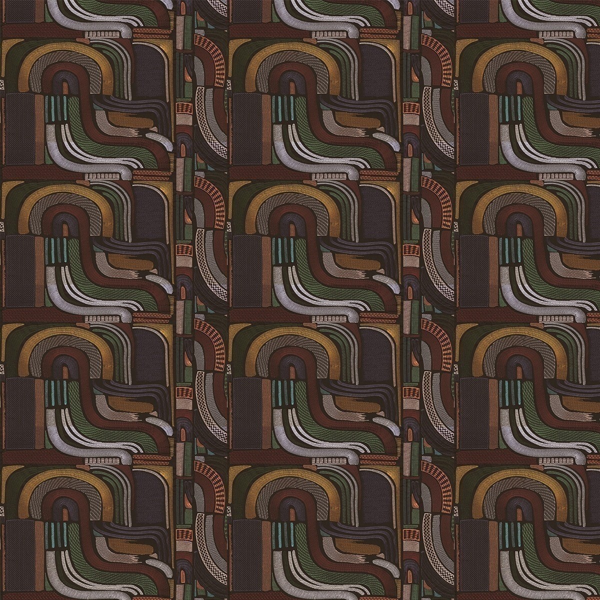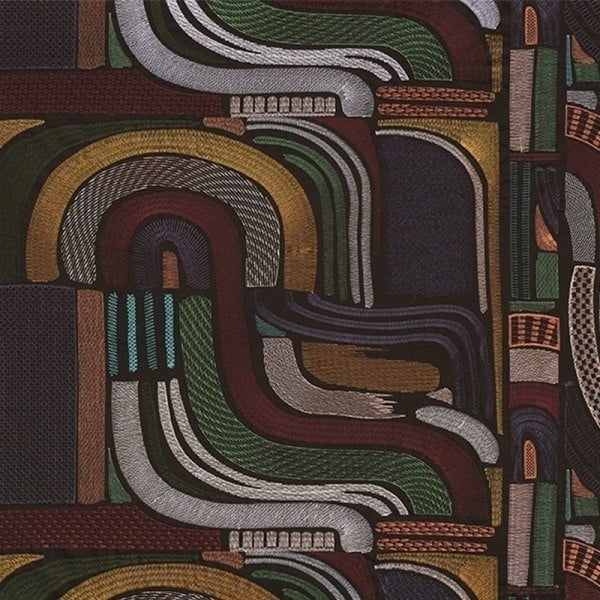 Iena arbore une broderie polychrome de courbes fines et épaisses. Son design rappelle l’image d’un labyrinthe avec des décorations rayées ou hachurées. Ce tissu offre une texture agréable au toucher.