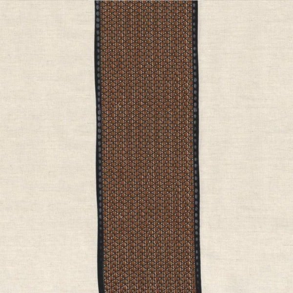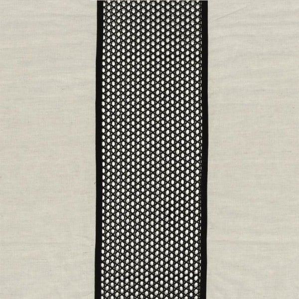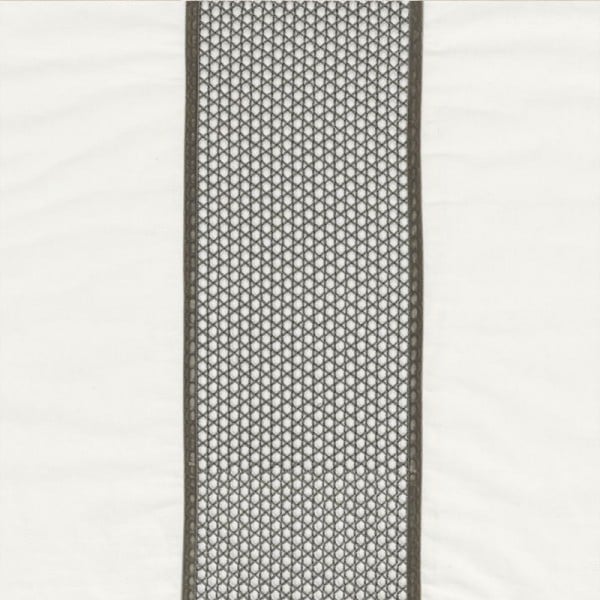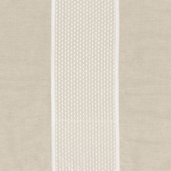 Inspiré des formes géométriques des alvéoles d'une ruche d’abeille, le motif graphique du tissu Nido met en avant une large bande brodée d’un treillis de fils formant des mailles hexagonales. Présenté dans des nuances profondes, ce grand ruban contraste avec la teinte du fond neutre et clair. Proposée par Casamance, cette toile en mélange de lin et de coton offre un toucher doux.