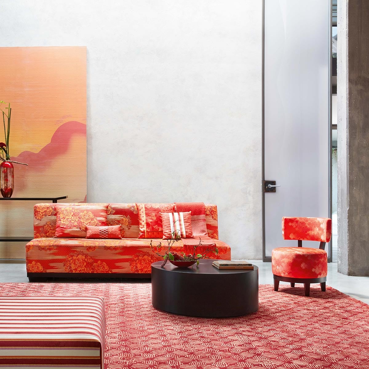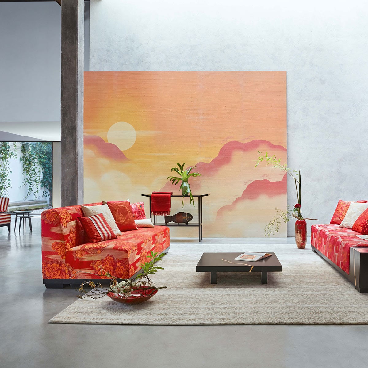 Kenzo propose un motif à la fois élégant et romantique à travers le tissu Butterfly. Ce dernier met en avant des rosiers de grande taille qui sont ornés d'un feuillage luxuriant. Ces fleurs présentées dans une palette bicolore adoptent des nuances douces et vives. Ces choix de teintes mettent l'accent sur le tissage de ce jacquard.