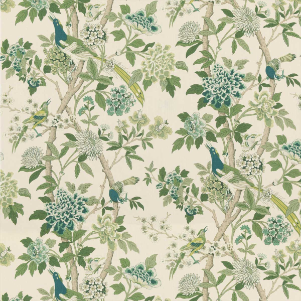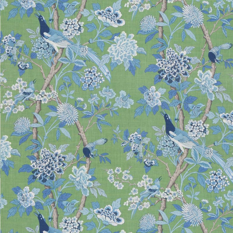 GPJ Baker brings a romantic and oriental note to interiors through the Hydrangea Bird Archive print. Large hydrangeas adorned with thin leaves make up the motif. A few birds perched on the flowering branches complete the design. Made of linen. this fabric offers a pleasant touch.