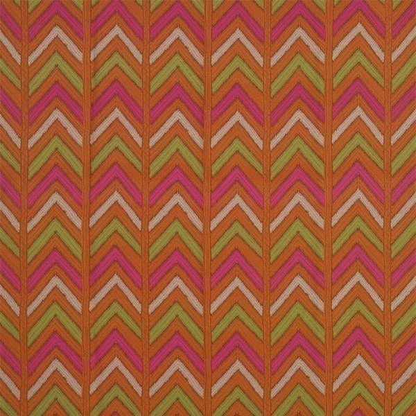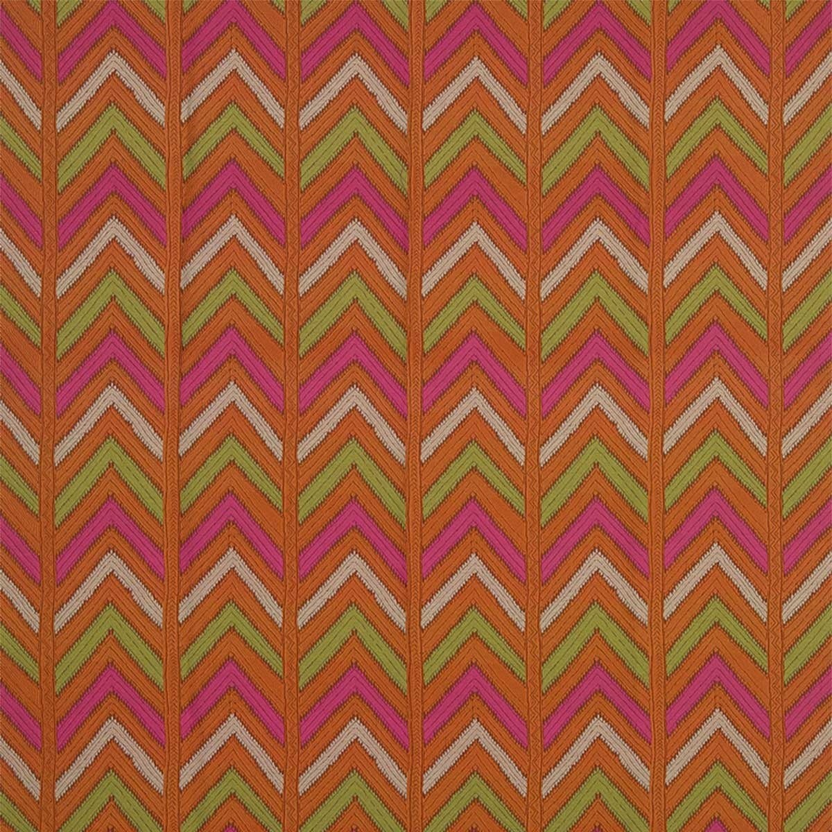 Le textile Varida d’Etro arbore un tissage légèrement en relief dans des couleurs vives. Ce dernier affiche des chevrons de taille moyenne séparés par des rayures fines. Texturée, cette étoffe graphique est agréable au toucher.