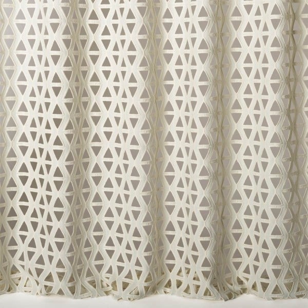 Apportez une touche moderne à votre espace de vie à travers le design graphique du voile Thalès proposé par Nobilis. Ce tissu présente des découpes triangulaires soulignées par une broderie en coton. Doté d’une double largeur, ce textile offre un drapé fluide.