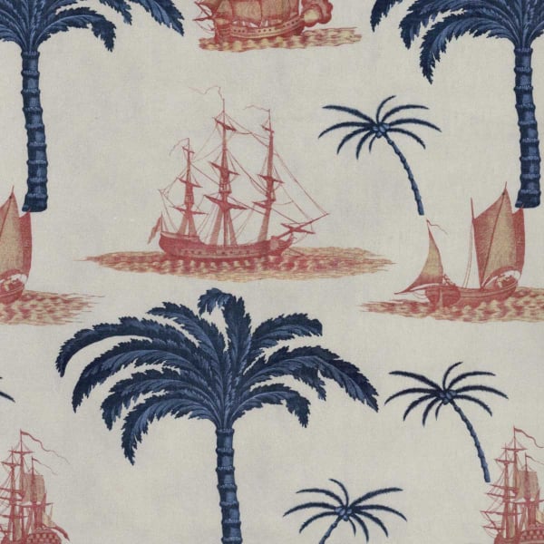 Des bateaux voguant sur une mer calme, des palmiers et des cocotiers composent l’imprimé de coton Aegean. Ce modèle proposé par Minthegap arbore des illustrations réalisées dans des couleurs vives qui contrastent avec un fond uni clair. Il offre une texture agréable au toucher.