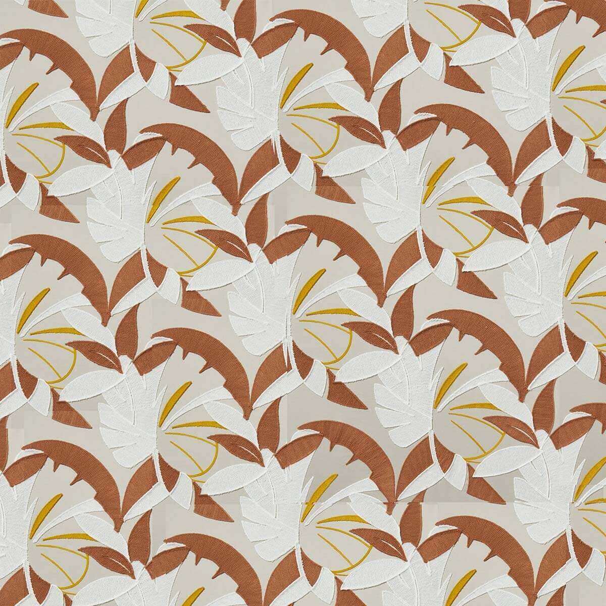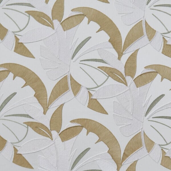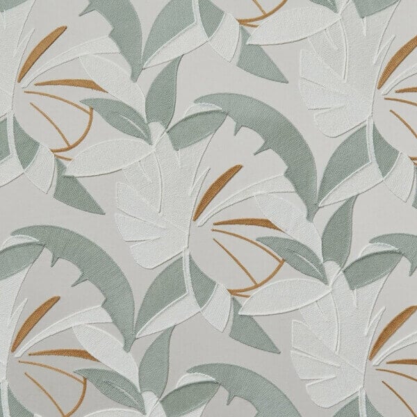 Embroidered on a cotton sateen backing, the sumptuous floral composition of the Secret Garden textile features large flowers with elegant lines. Accompanied by large leaves, they contrast with a plain light background. Designed by Etamine, this fabric brings a touch of romance and freshness.