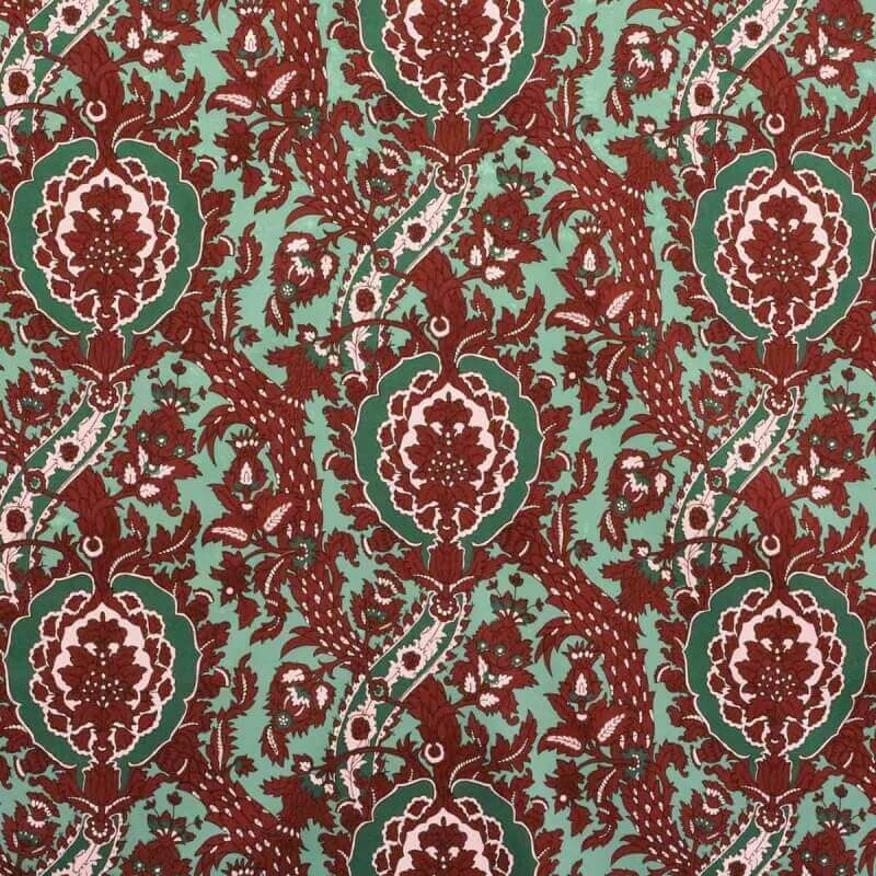 L’imprimé en satin de coton Les Indes de la Maison Leleu et Lelièvre offre un design à la fois oriental et romantique. Ce design composé de paisleys et de fleurs imaginaires ornées de détails ornementaux arbore des tracés fins. Il se décline dans des couleurs vives, douces et neutres qui apportent un subtil contraste entre les éléments du dessin.