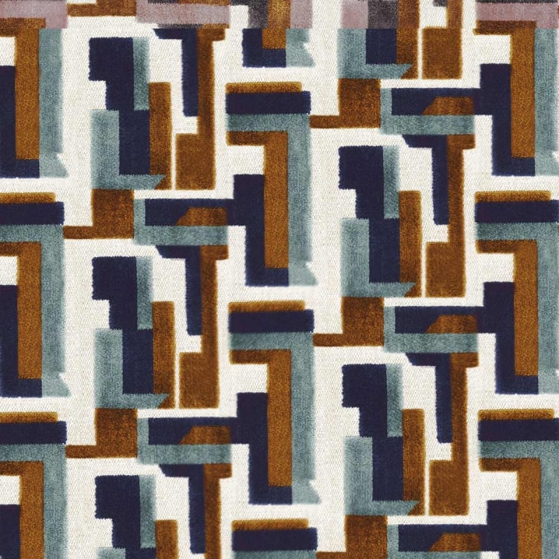 Des figures rectangulaires encastrées et superposées composent le design graphique du velours Bebop signé Casamance. Ce modèle multicolore se décline dans des nuances chaudes, sombres et froides. Les teintes douces et vives de cette palette créent un subtil jeu de perspective entre les tracés du dessin. Ce textile doté d’une résistance exceptionnelle offre une texture agréable au toucher.