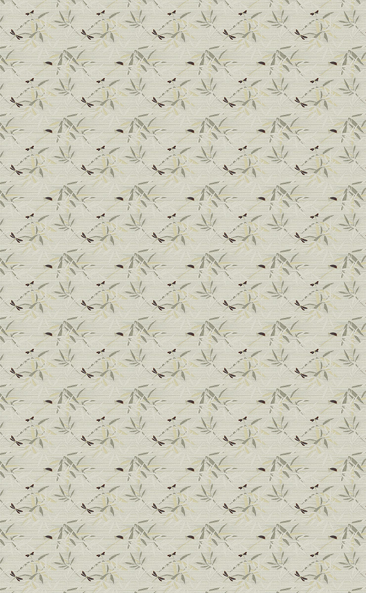 Les libellules et les feuilles de bambou se dessinent sur un fond en gros grain. Ce décor en jacquard en soie de cette création Armani Casa est visuellement très proche d'une broderie. Les variantes colorées inattendues et les tons neutres plus subtils sont animés par des touches de couleur brillantes sur des détails complexes.