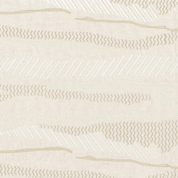 Une broderie fine et claire compose le design du textile Aso. Cette étoffe de Casamance met en avant des rayures de petite taille et des zigzags à l’horizontale qui adoptent des teintes sobres et douces. Ce choix de nuances apporte un rendu naturel et authentique au motif classique.