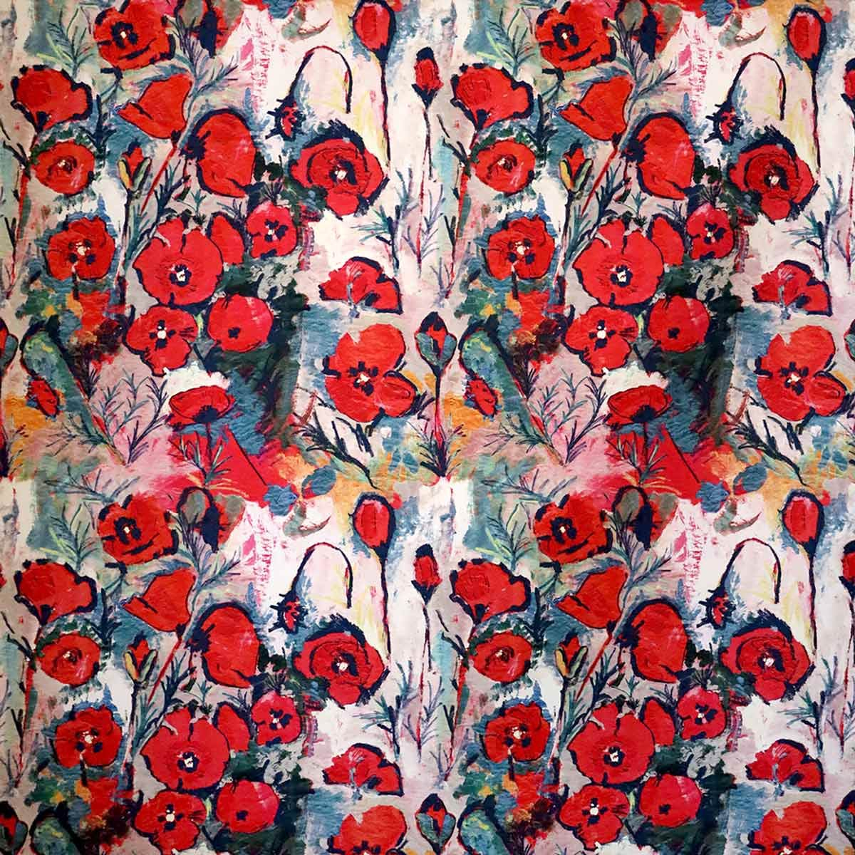 Originalement peint à la main, le motif du velours Love Passion présente une multitude de coquelicots mis en valeur par une teinte rouge vive. Picturalement traité à la manière des peintures expressionnistes avec des traits puissants et des contours foncés, ce tissu créé par Lalie Design emplit vos décors d’une atmosphère joyeuse et rafraîchissante.