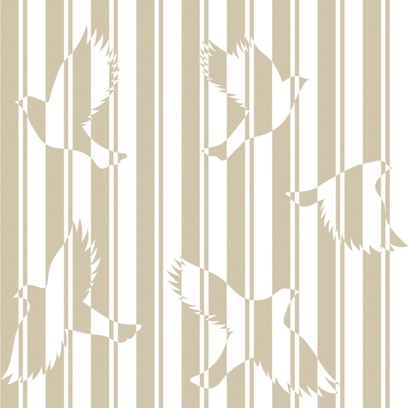 Le tissu Polka arbore un design de colombes virevoltant ici et là sur un fond de rayures. La succession de ces rubans unis et de tailles différentes offre une illusion de mouvement à l'illustration. Cette popeline de coton offre une surface lisse et un toucher doux.