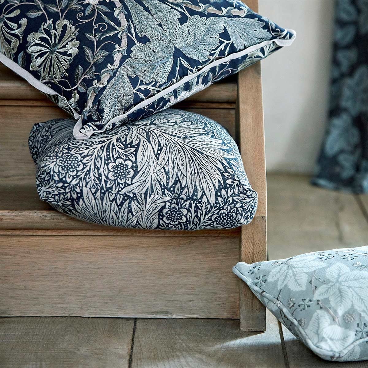 Pure Marigold et son impression de délicats soucis sont une proposition de Morris and Co datant de 1875. Son motif de fleurs et de feuilles est imprimé sur un lin d’ameublement. Ce dernier ayant un léger effet perlé, cela lui confère un éclat lumineux.