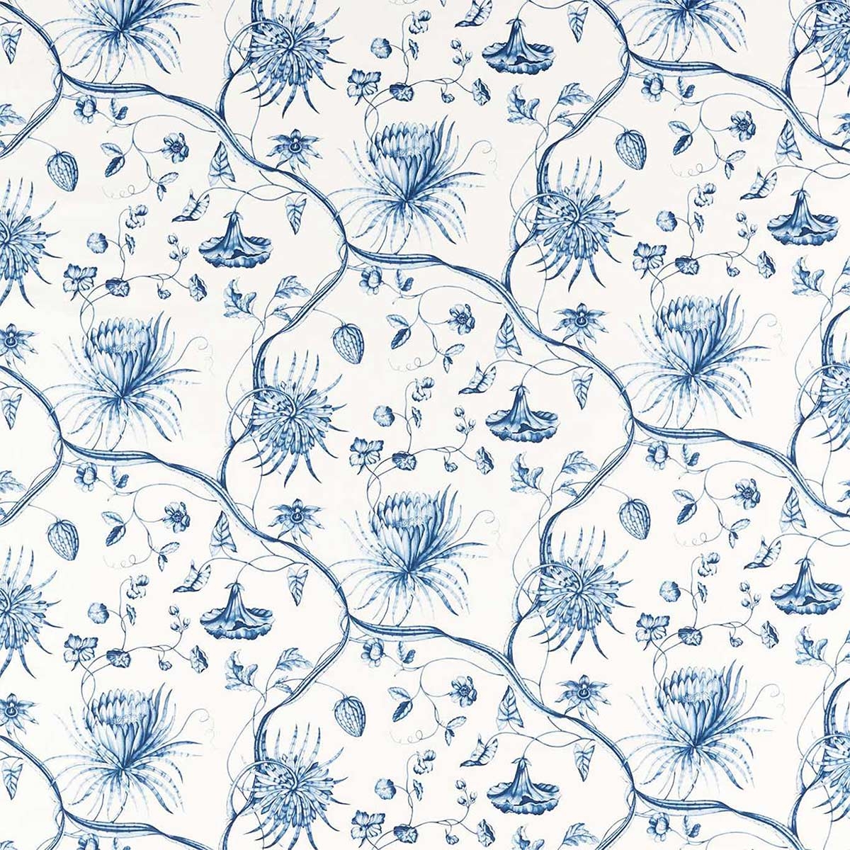 Des plantes aux fleurs naturelles composent le motif de la cotonnade Phaedra Toile. Leurs branches s’entrelacent pour former un treillis géométrique stylé. Ce décor se déploie sur un fond monochrome, dont la nuance claire met en valeur la couleur des dessins. S’inspirant d’une toile créée au XVIIIe, cette œuvre imaginée par Zoffany apporte une touche raffinée aux pièces.