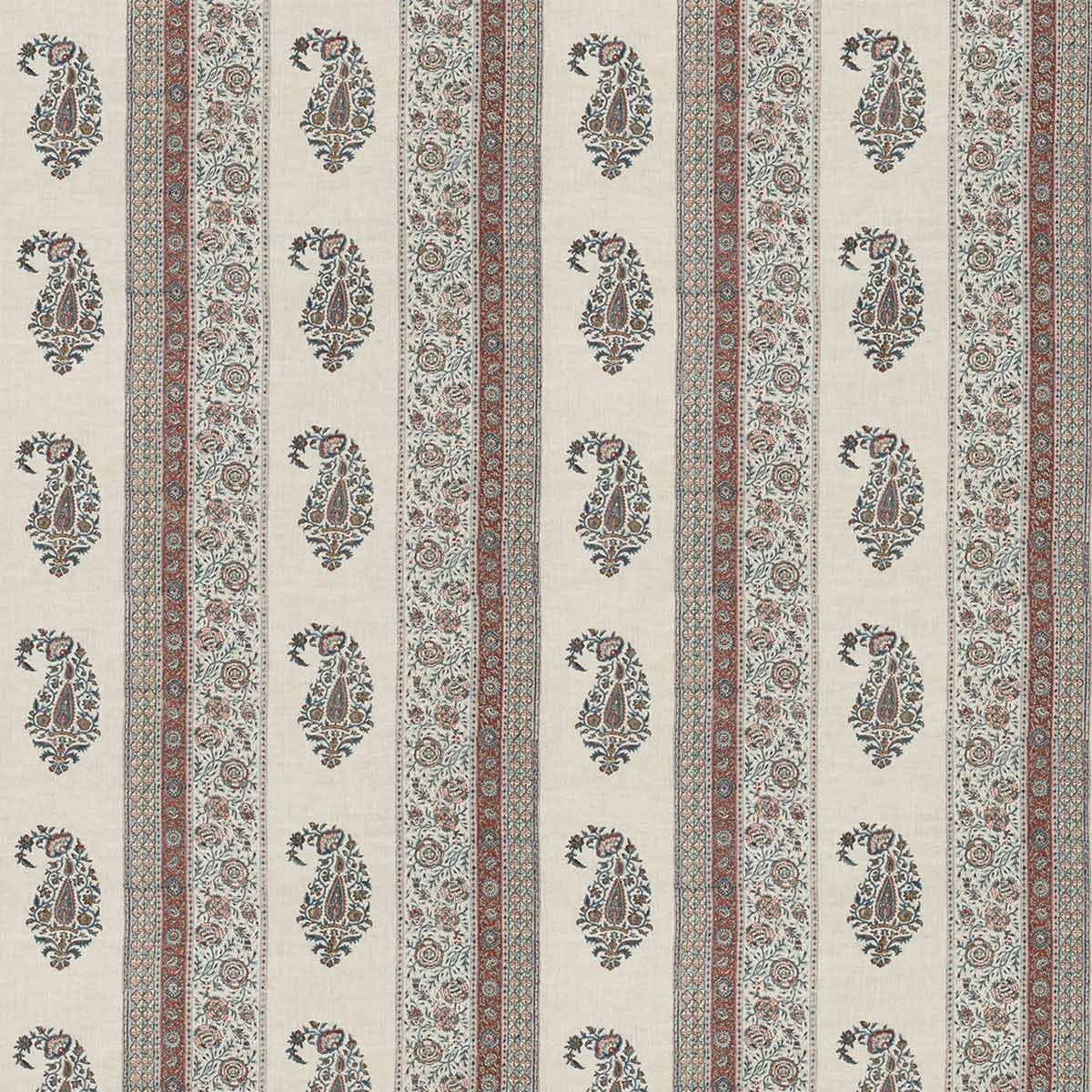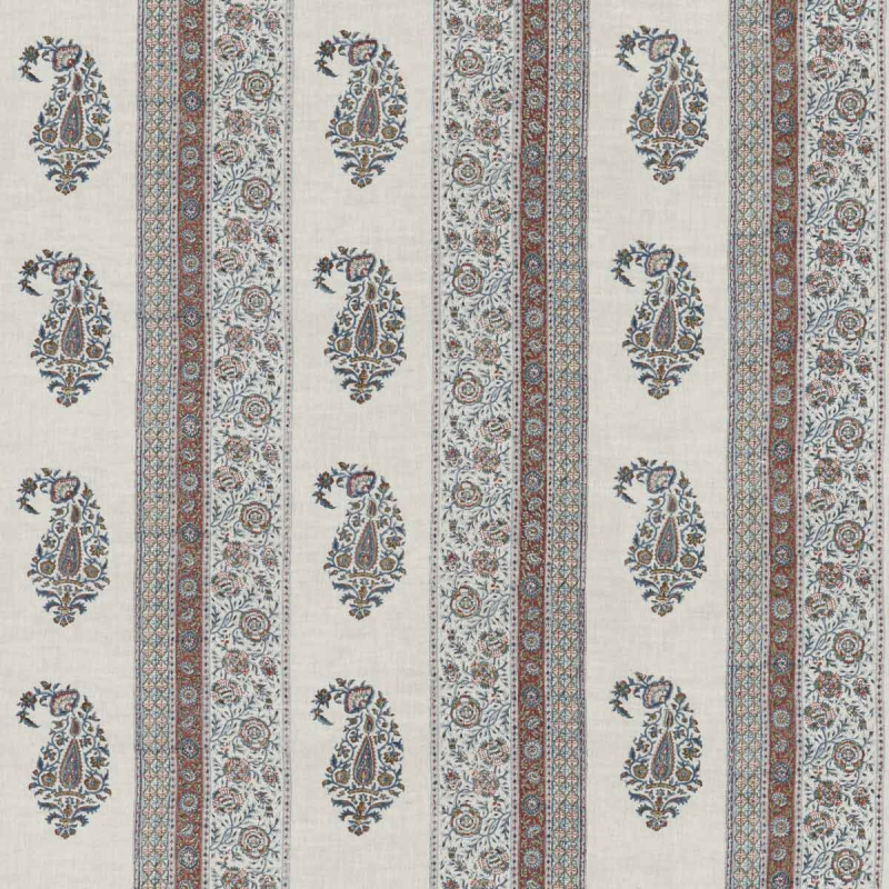 Le tissu Portobello incarne l’élégance des designs décoratifs anglais. Il est orné d’un motif cachemire imprimé en bloc et encadré par une bordure rayée aux détails complexes. La composition coloristique rehausse les détails exquis du dessin qui prend vie sur un fond entièrement en lin. Ce modèle est proposé par GP & J Baker dans deux coloris classiques.