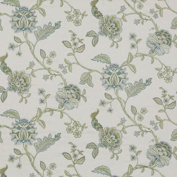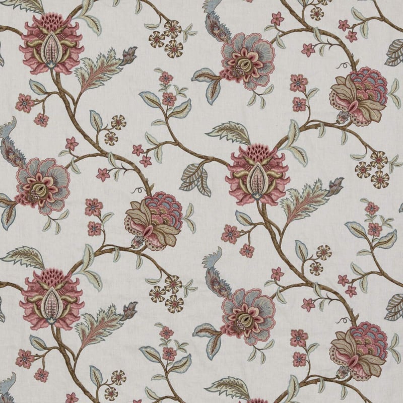 La surface du tissu Sudbury est parée d’un grand motif floral aux branches ondulantes et aux pétales foisonnants. Réalisé dans un design romantique et classique, ce dessin affiche des détails travaillés soulignés par un choix coloristique habile. Le fond légèrement crayeux au ton écru plonge les intérieurs dans une ambiance chaleureuse.  GP & J Baker propose ce modèle dans deux variantes.