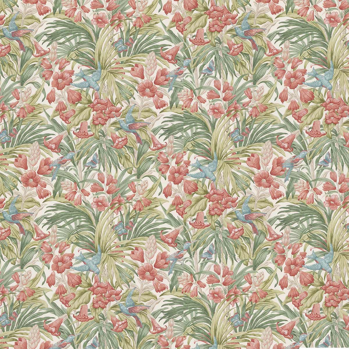 Cette proposition de GP & J Baker met en lumière l’arbuste Brugmansia. Ses grandes fleurs parfumées en forme de trompette lui ont valu le nom de «trompette des anges». Ce surprenant motif, conçu en 1913 par Stuart Proverbs, habille ce tissu d’ameublement Trumpet Flowers. Une riche faune volante habite une jungle florale et magnifie cette étoffe de coton.