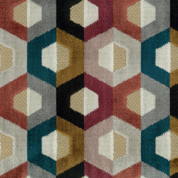 Il velluto Favo, come indica il nome italiano, presenta un motivo a nido d'ape. Osborne e Little reinventano le celle con forme e colori insoliti, donando originalità al modello. Le figure, tessute in jacquard, presentano una differenza di texture con il fondo in twill di cotone. Il loro aspetto vellutato dona inoltre rilievo e lucentezza al tessuto.