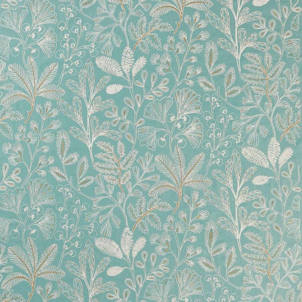 Le tissu La Devinière de chez Osborne and Little s’inspire des grands jardins de la Touraine, en France. Le motif décrit une variété de plantes, dont l'arbre aux quarante écus avec son feuillage et sa floraison atypiques. La dominance du pastel, qui évoque la douceur du paysage, est accentuée d’une touche dorée pour rehausser l’ensemble.