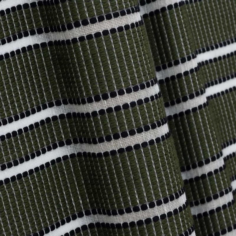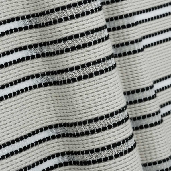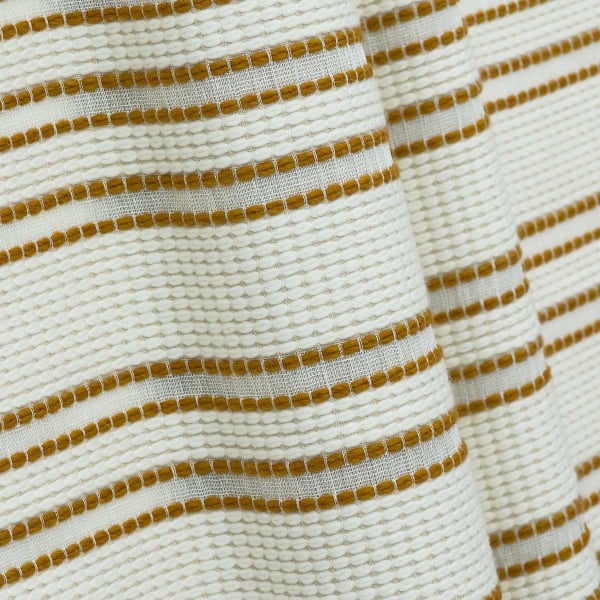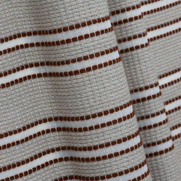 Totem présente une composition de sangles entrelacées, créées à partir de larges brins de laine, disposées sur un fond de gaze de lin. L'opacité et la transparence s'alternent, permettant un jeu captivant de découpes horizontales ou verticales en fonction de l'orientation du tissu. Ce tissu d’ameublement Métaphores peut également être utilisé pour cloisonner un espace. Entre densité et légèreté, structure et souplesse, ce tissu offre ainsi une polyvalence remarquable.