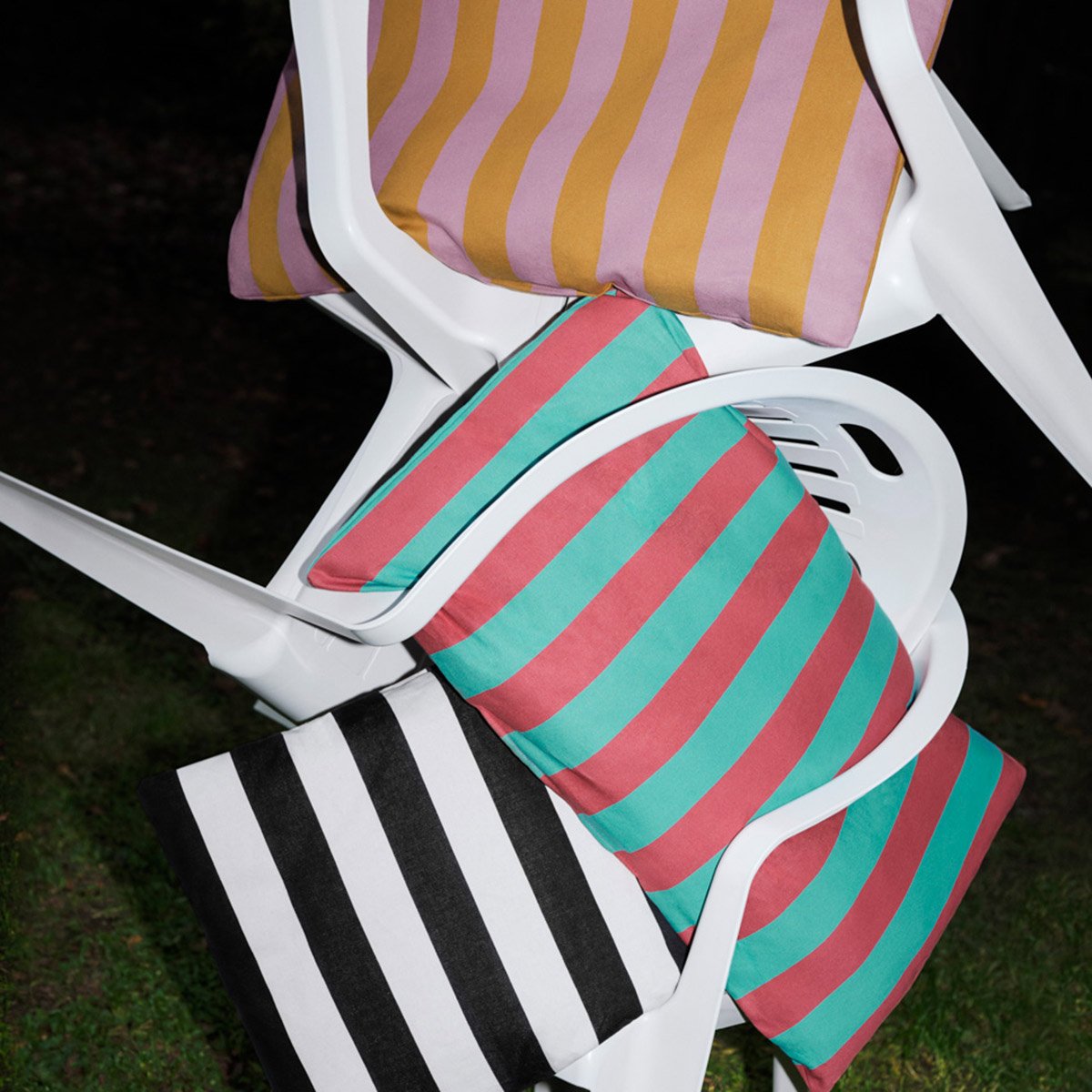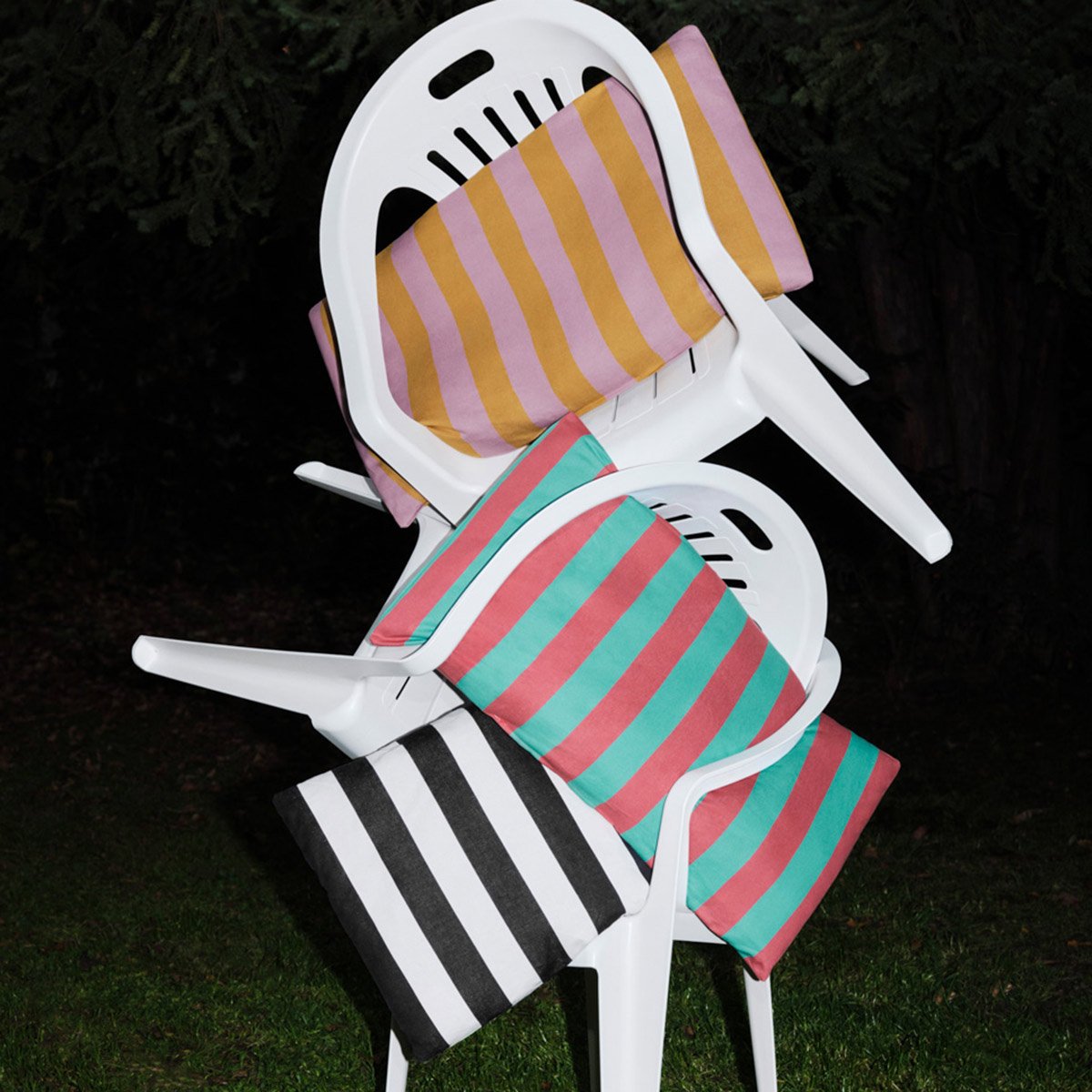 L’étoffe Belmondo de la maison Dedar enchante par son imposant motif à larges rayures bicolores. Son fond entrelace une trame de lin délicate avec une chaîne de coton, créant ainsi un tissu à la fois tactile et doté d'un somptueux drapé. La coloration se veut audacieuse en combinant teintes douces et vives, pour un rendu visuel dynamique.