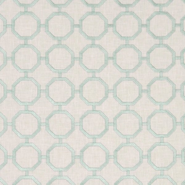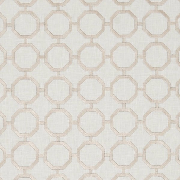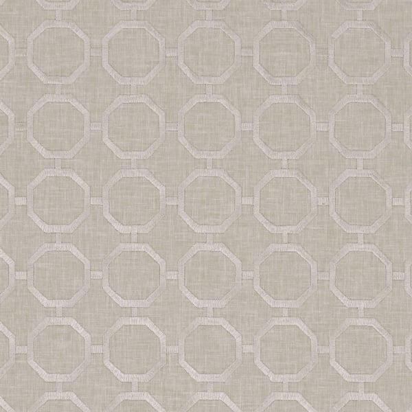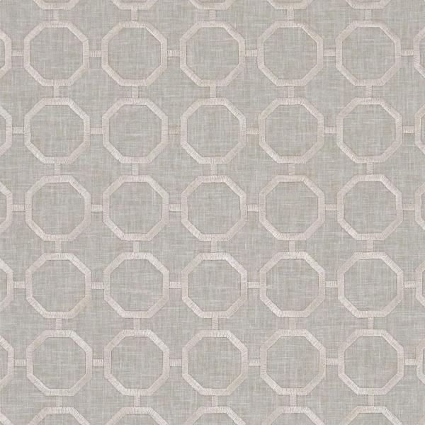 Le tissu Glamour fait partie des modèles extra-larges de la maison Clarke & Clarke. Il montre l’élégance de la simplicité à travers une broderie monochrome de figures octogonales, reliées entre elles par des petits traits horizontaux et verticaux. La brillance des fils brodés, mise en évidence sur la surface mate du textile, apporte une touche luxueuse à l’ensemble.