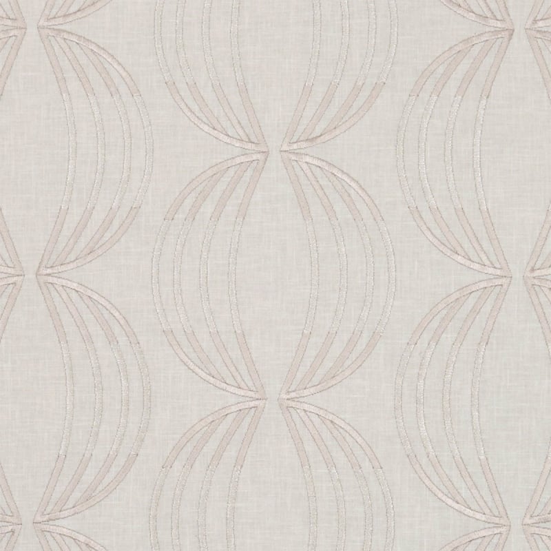 Carraway présente des formes géométriques aux lignes fluides héritées de l’Art Déco. Les figures, stylisées par des arcs, dérivent du motif japonais “tatewaku”. Elles sont entièrement brodées avec des fils brillants qui contrastent avec la texture mate du tissu. En combinant ainsi le luxe et le sobre, Clarke & Clarke crée un modèle ton sur ton d’une élégance intemporelle.