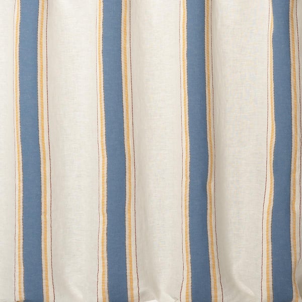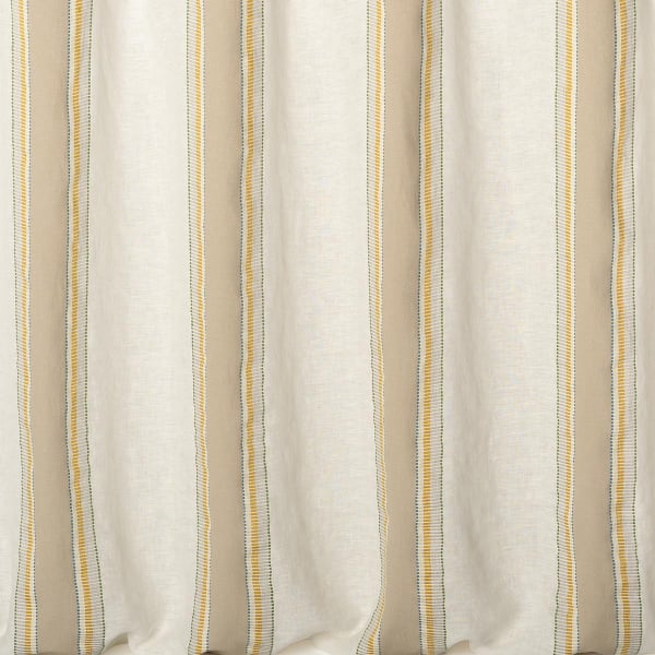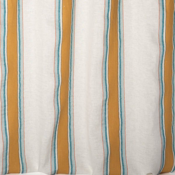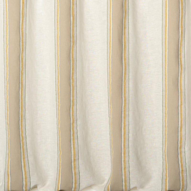 Inspiré du soleil des tropiques, le voile lourd Belize de Nobilis séduit par ses rayures multicolores accentuées de lignes dorées. Ces raies tissées Jacquard sont affichables à l’endroit comme à l’envers, avec des couleurs inversées. La souplesse du textile, obtenue par le mélange lin-coton, permet également au motif d’être présenté à l’horizontale ou à la verticale.