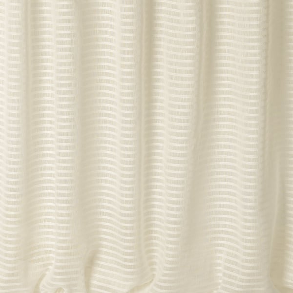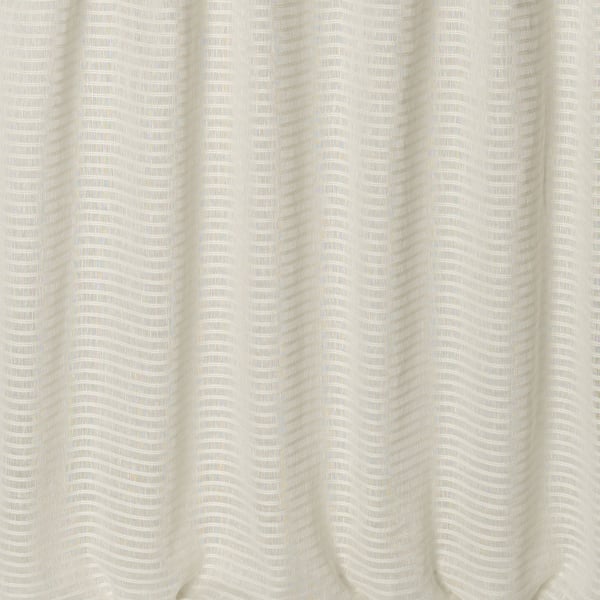 Le vaporeux Hydra, un voilage en mousseline signé Nobilis, attire par son charme aérien. Sa quasi-transparence vient du tissage lâche de fines fibres de lin et de coton. La verticalité marquée du filage en trame est ici équilibrée par des rayures horizontales en relief, tissées dans l’armure. Celle-ci, sous son apparence délicate, cache beaucoup de tenue et de robustesse.