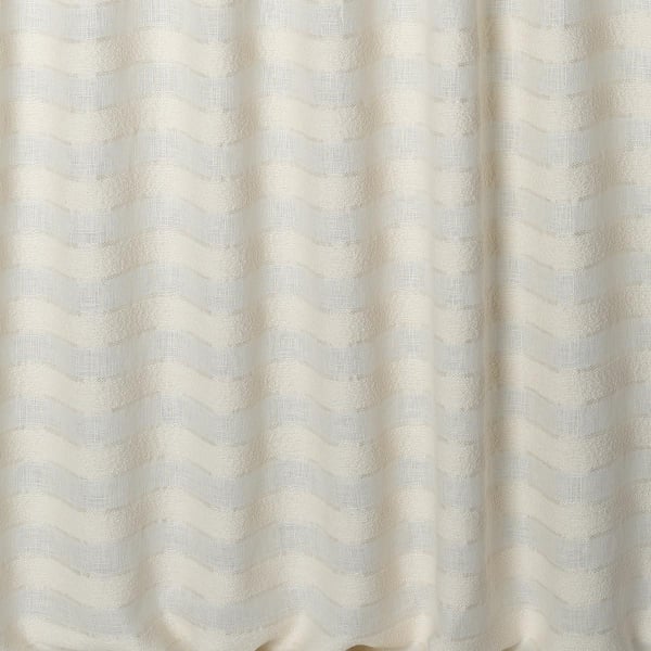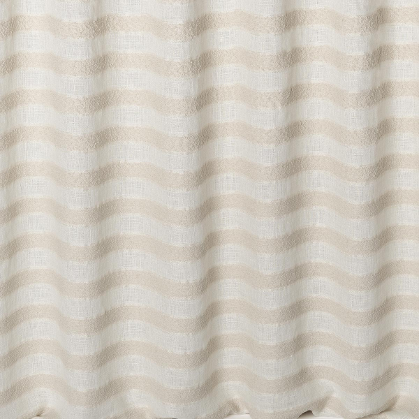 Le voile lourd Sifnos de Nobilis se démarque par d’épaisses rayures duveteuses sur son armure en lin. Ces bandes en laine bouclée de polyester donnent du relief au textile, tandis que leur souplesse optimise la fluidité du drapé. Le modèle offre ainsi un tombé majestueux qui fait docilement onduler les raies comme des vagues.
