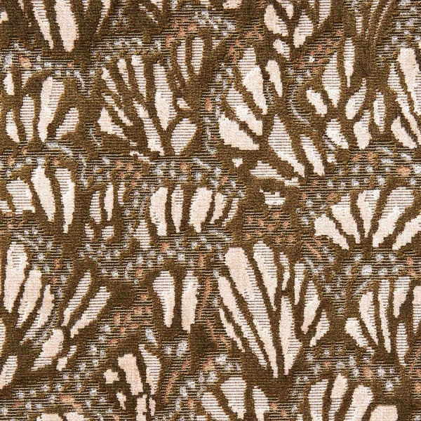 Le velours Monarch capte l’envolée spectaculaire de milliers de papillons monarques vers le Mexique tous les novembres. Ces figures impressionnantes, tissées avec du coton et de la viscose, couvrent toute la surface du textile. Hodsoll McKenzie les propose dans des couleurs naturelles orangeâtres nervurées de noir, mais il existe également des variantes aux teintes inhabituelles.