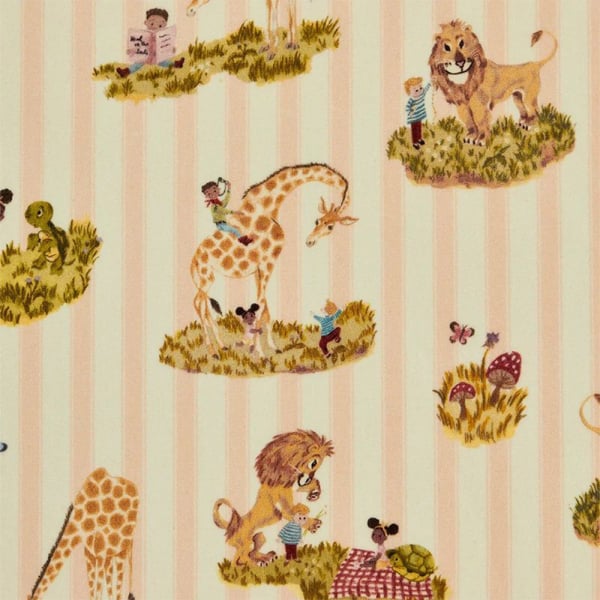 Peint à la main, le motif de Eco Story Time Stripe incarne une source d'inspiration pour l'apprentissage, l'enseignement et la narration. Trois personnages attachants, le Lion, la Tortue et la Girafe, prennent vie sous le pinceau talentueux de la fondatrice, Whinnie Williams. Doté de rayures sur le fond, ce velours de coton offre une expérience visuelle et tactile qui évoque des souvenirs d'histoires et de moments partagés.