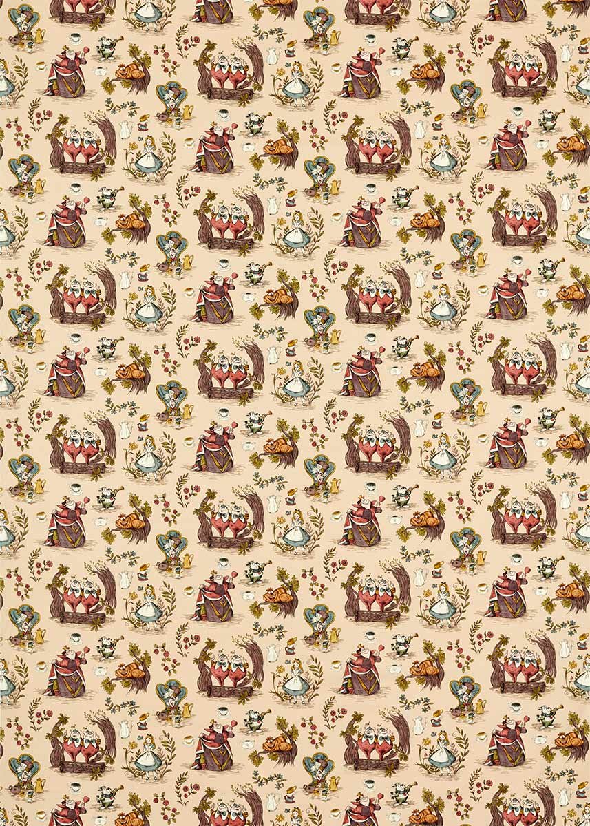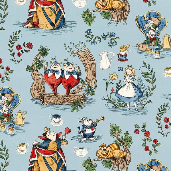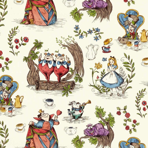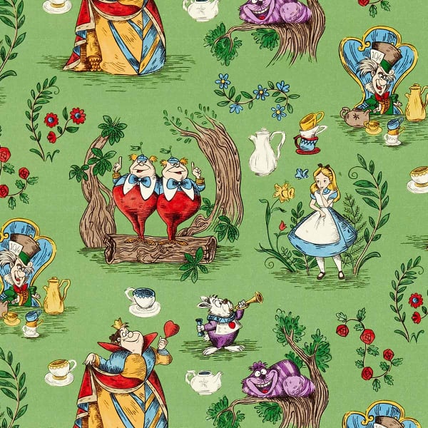 Le Lapin Blanc nous entraine dans un monde fantastique où Alice au Pays des Merveilles fait la rencontre du Chapelier Fou, du Chat de Cheshire, et des jumeaux, en cours de route. Créé pour la collaboration entre Sanderson et Disney Home, chaque personnage du tissu a été soigneusement peint à la main afin de donner vie à l’histoire, de manière authentique.