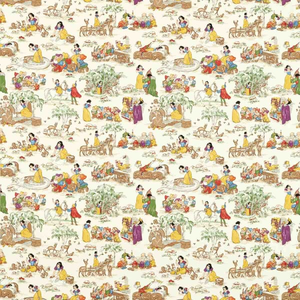 Créé en l'honneur de Blanche-Neige, ce charmant motif de 1938 rassemble différentes scènes captivantes, directement tirées du film d'origine. Présenté par Sanderson, en collaboration avec Disney Home, le tissu conserve scrupuleusement les proportions et les détails issus du document d'archives.