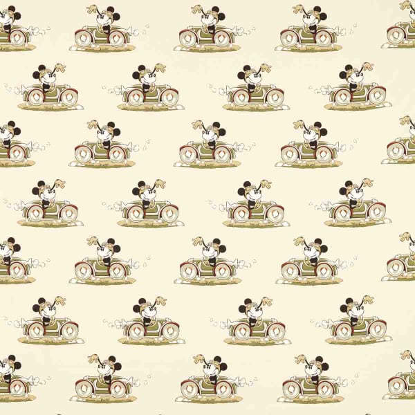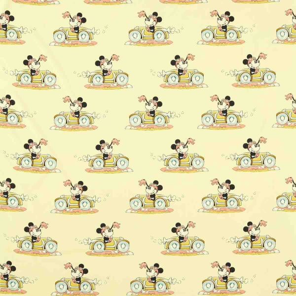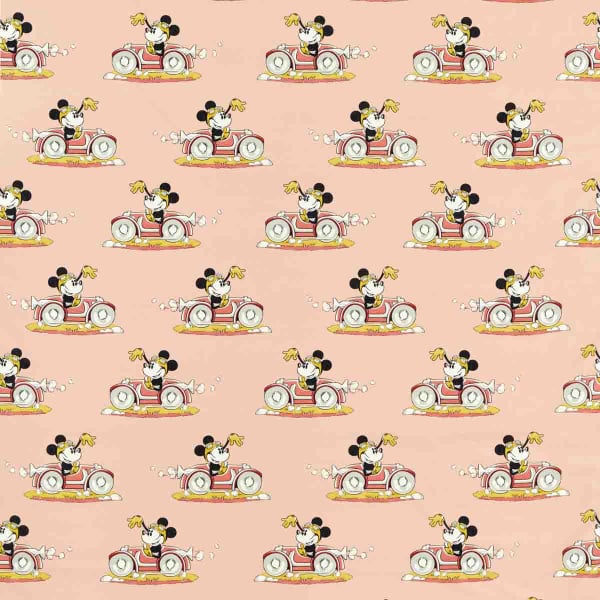 Le motif de Minnie en mouvement, met en scène Minnie Mouse en train de rouler dans sa voiture décapotable. Le tissu s'inspire d'un superbe autocollant mural peint à la main, tiré des archives de Sanderson. En collaboration avec Disney Home, Minnie, rayonnante de joie et de charme, salue les amis qu'elle croise tandis qu'elle traverse cette fidèle reproduction.