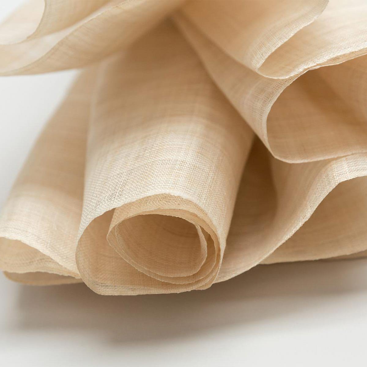 Abaca Light, un tissu semi-opaque conçu par CMO Paris, captive par le charme artisanal de son aspect brut. Si le tissage fait penser à la texture de la toile de jute, la brillance des fibres d’abaca fait toute la différence. Le modèle arbore ainsi une surface lustrée au toucher lisse, qui transmet sa luminosité aux espaces.