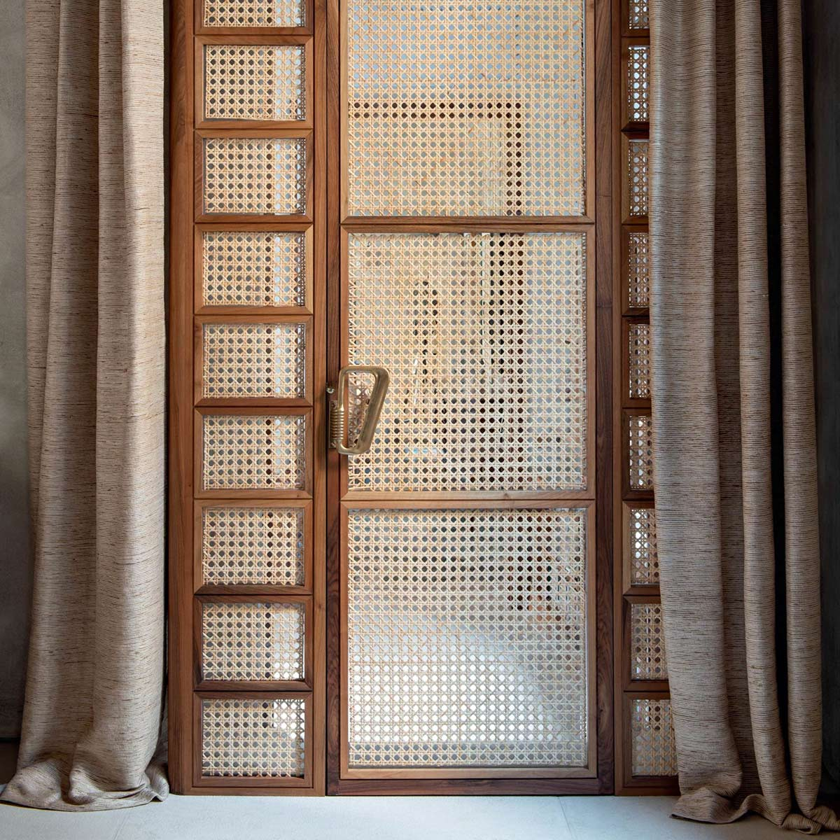 La maison CMO Paris présente une pièce artisanale d'une raffinement classique avec Cannage XXL. Ce tissu est entièrement conçu en rotin, déployant un tissage aéré et généreusement espacé. Sa trame donne naissance à un treillis classique, aussi décoratif que fonctionnel.