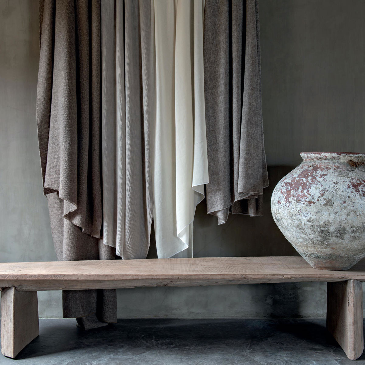 Élaborée par la maison CMO Paris, Cachemire Plissé est une création en cachemire, révélant un aspect subtilement plissé. Cette œuvre textile arbore fièrement sa caractéristique naturelle avec une légère transparence. D'une grande finesse, elle est proposée dans une palette de nuances terreuses.