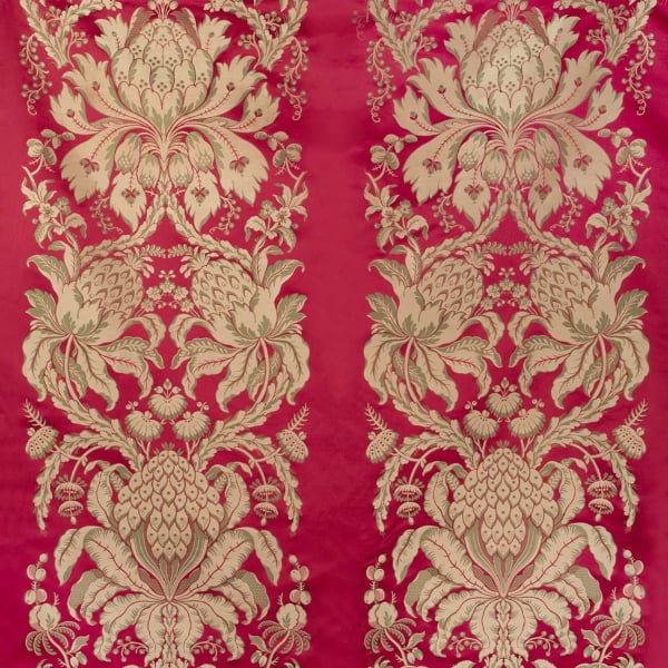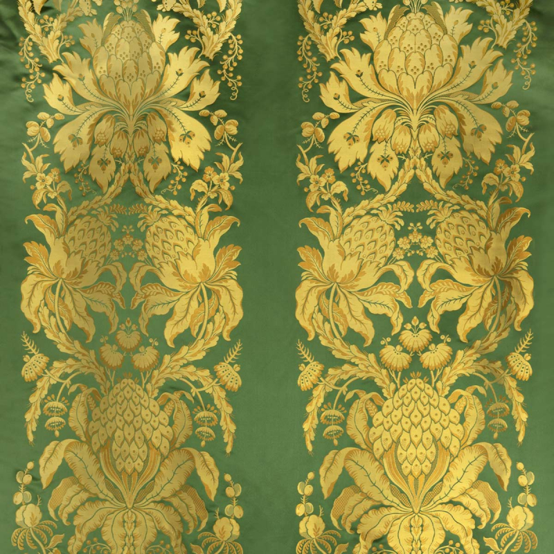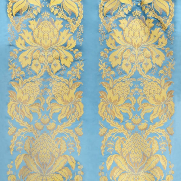 Tissé dans la manufacture Lelièvre à Lyon, ce Lampas doux et brillant fabriqué entièrement à partir de soie, révèle un motif végétal emblématique du XVIIème siècle. Cette élégante étoffe se décline dans des coloris contemporains. Son fini aux reflets nacrés habille vos éléments de décors d’une touche luxueuse.